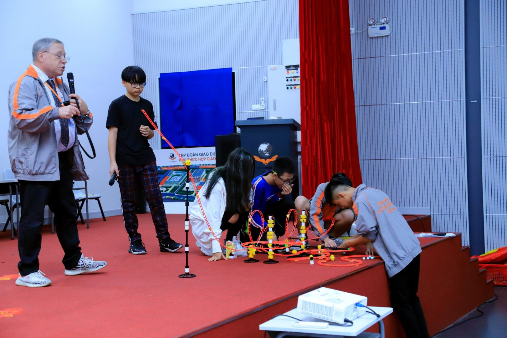The second component was a guest speaker from the engineering community who discussed the scientific aspects of the roller coasters and other attractions at Sun World, a popular theme park in Ha Long. At the culmination of this event, the younger students joined their upperclassmen in sending marbles down the tracks of the model coasters, which generated great excitement and enthusiasm.